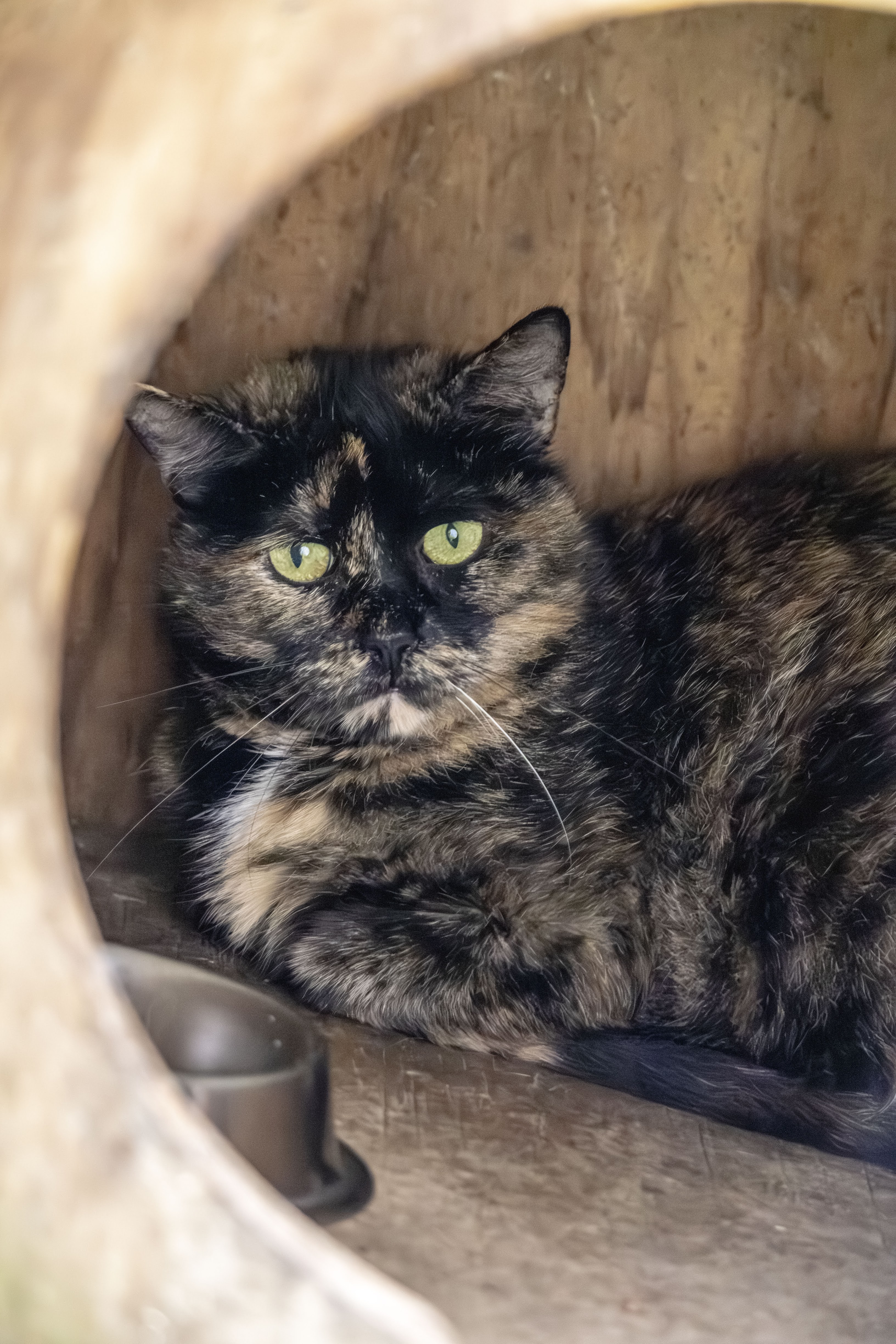 Night est arrivée au refuge après avoir été retirée d’un bungalow où vivaient 27 chats. C’est une minette réservée et peu sociale, qui a encore besoin de temps pour s’adapter et se sentir en sécurité.
